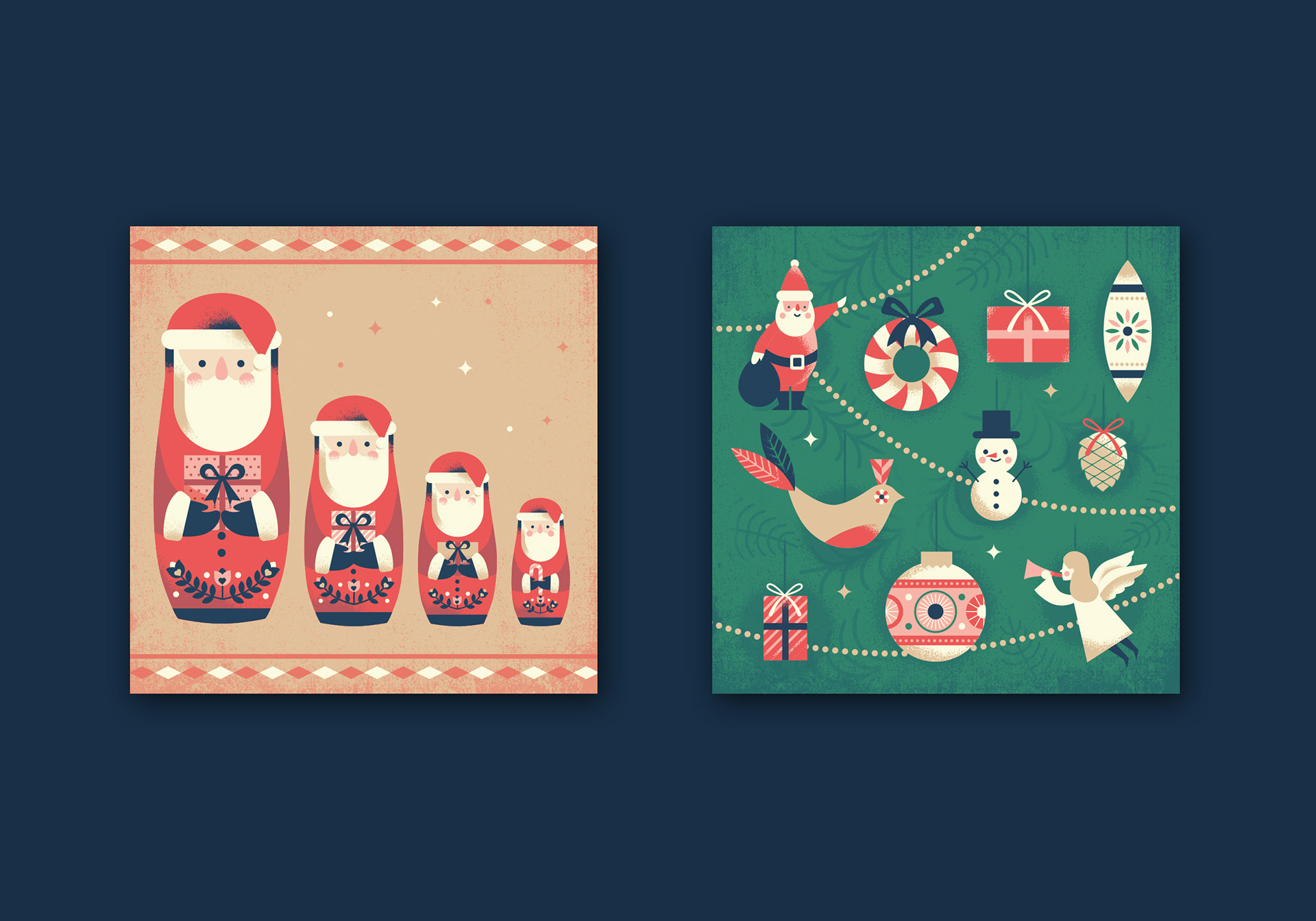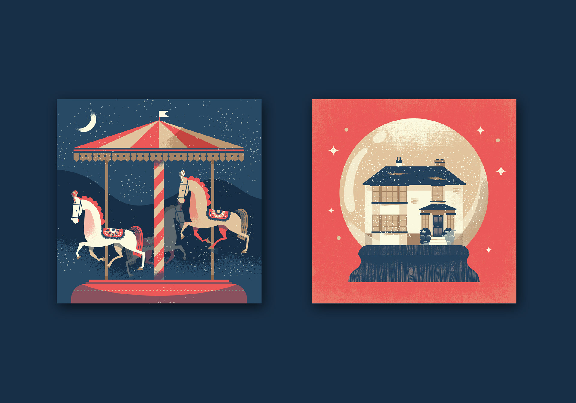 A series of christmas card designs I created based on memories of christmas time festivities.